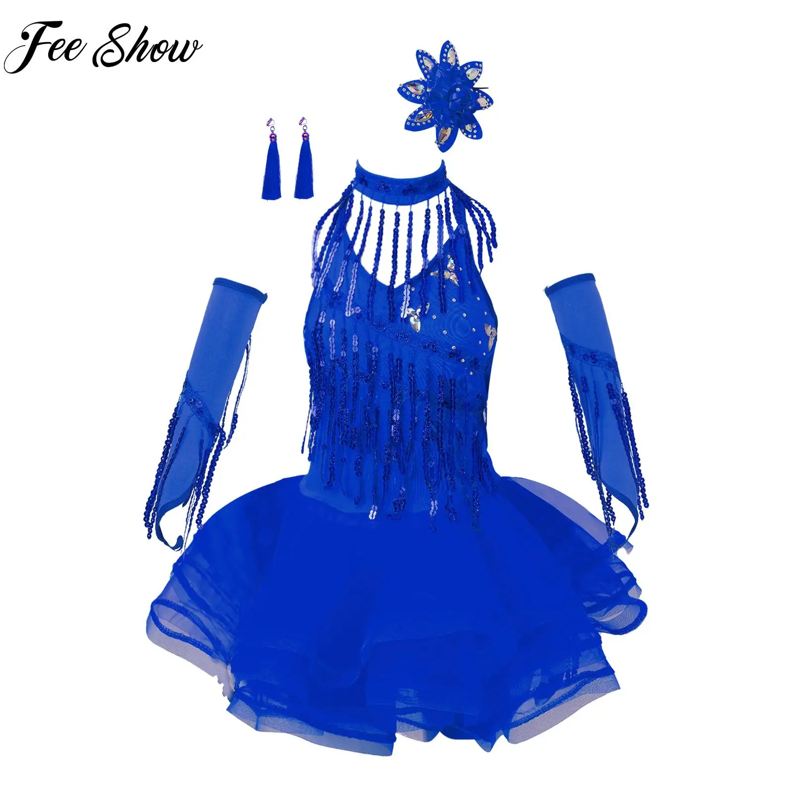 Детская юбка-пачка для латиноамериканских танцев, с блестками, крест-накрест