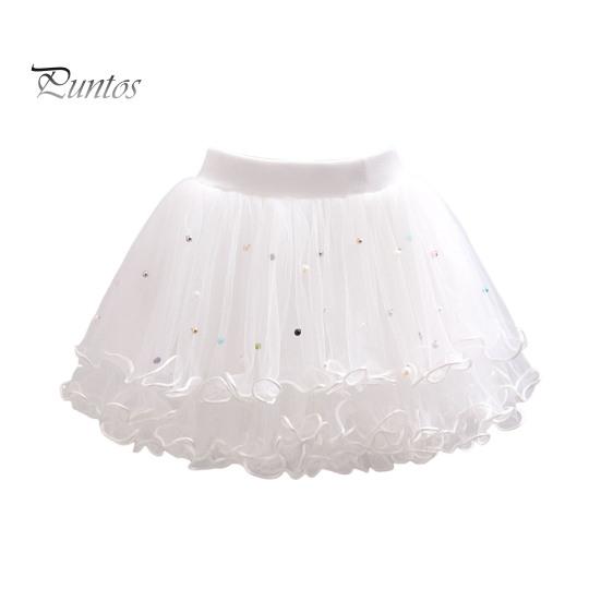 Детская юбка с эластичной талией и средней посадкой, однотонная юбка-пачка с бисером, милый стиль, многослойная сетчатая юбка-фонарик из пряжи 80 cm белый