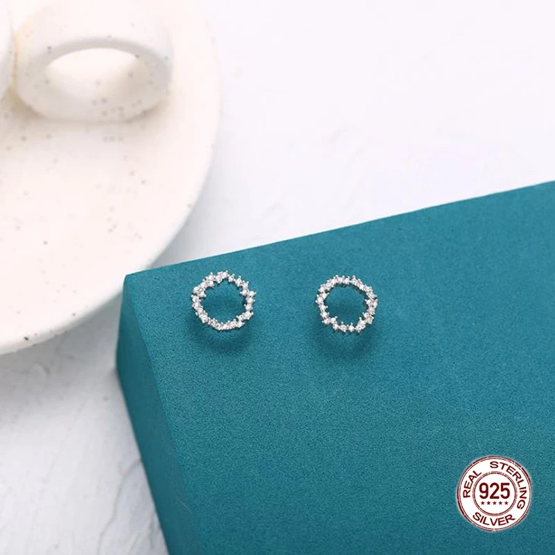 Sparkling Circle Earrings with Zircon 925 Sterling Silver Korean Women Jewelry Accessory Birthday Gift for Girlfriend