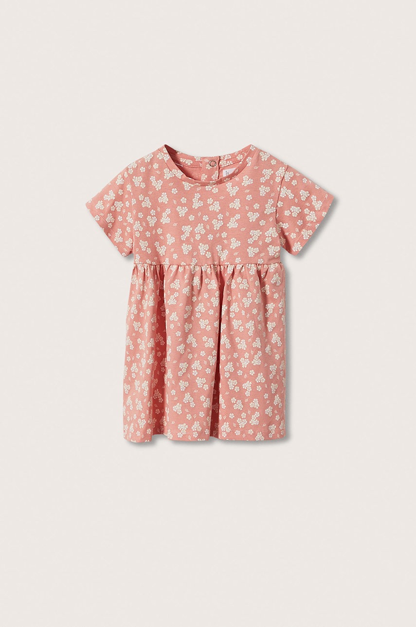 Детска памучна рокля Mango Kids Vicky в розово къс модел разкроен модел, Розов