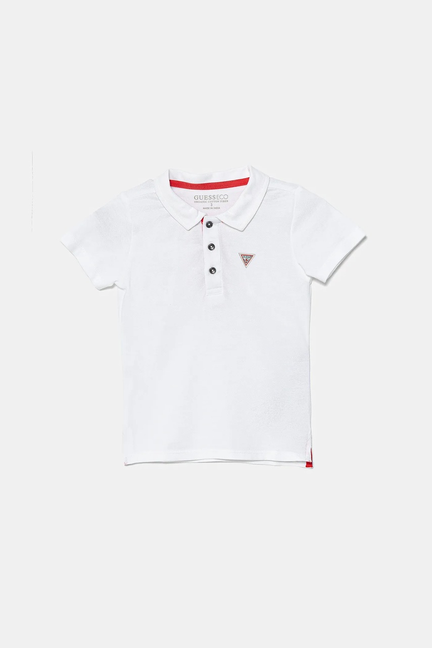Детска памучна тениска с яка Guess в бяло с изчистен дизайн, Бял