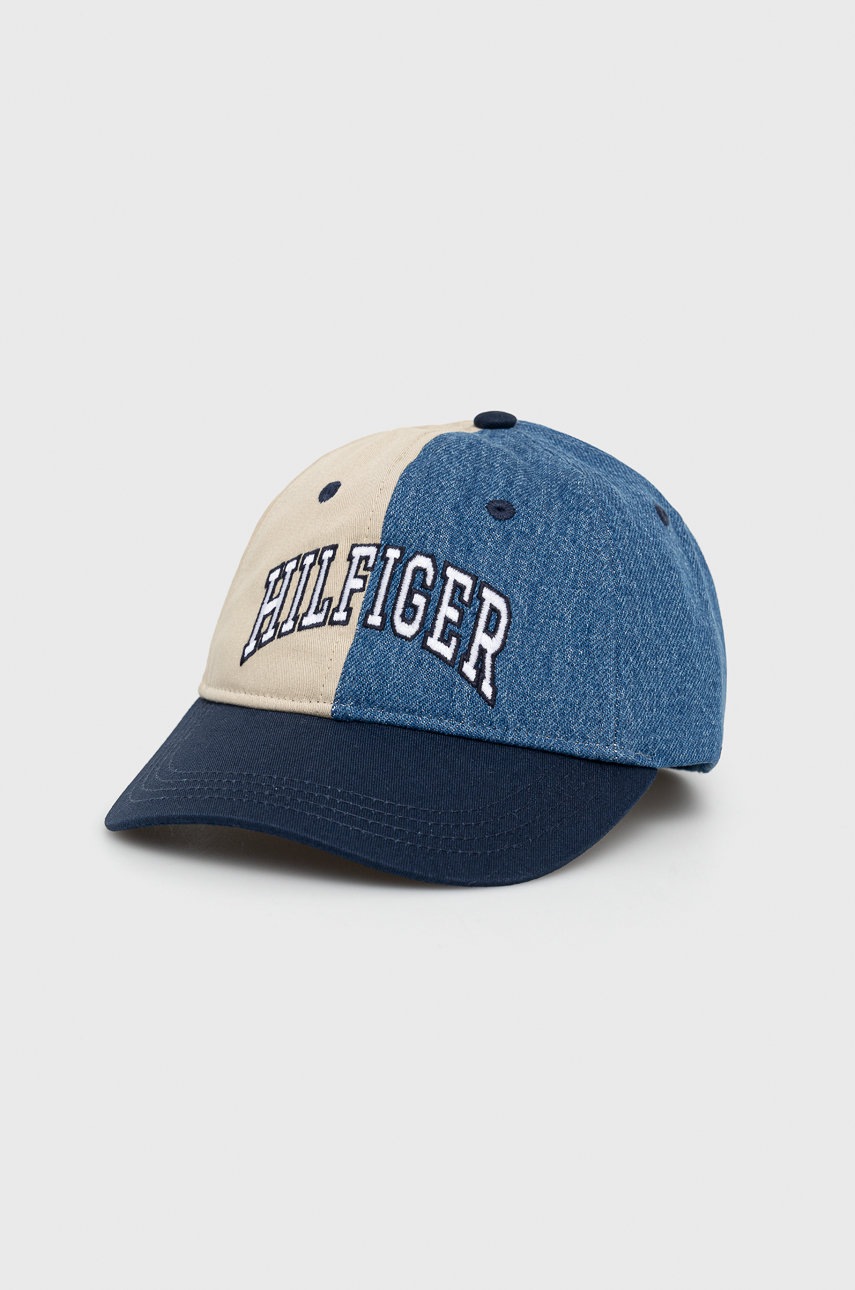 Детска памучна шапка Tommy Hilfiger в тъмносиньо с апликация, Тъмносин