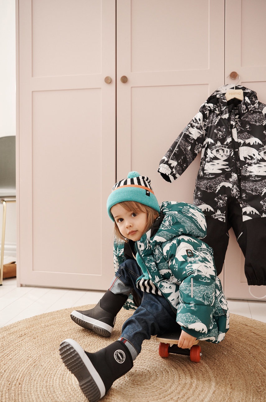 Шапка от колекция Reima. Моделът е направен от шарена материя.