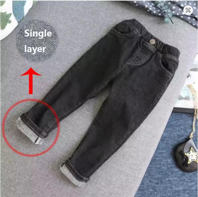 Детские Джинсы Толстые Теплые Весна Осень Зима с Флисом для Мальчиков Девочек Повседневные Джинсовые Брюки Детские 140