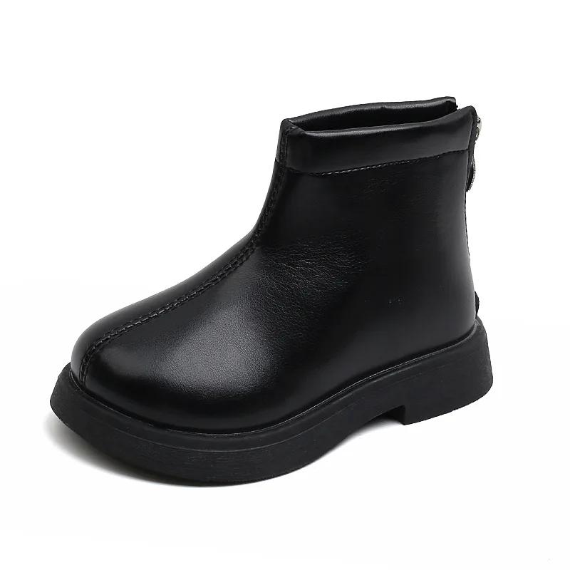 Детские ботильоны в ретро-британском стиле 2024 года, зимняя новая мода для мальчиков и девочек, короткие ботинки, нескользящие детские кожаные ботинки, однотонные 22 чёрный