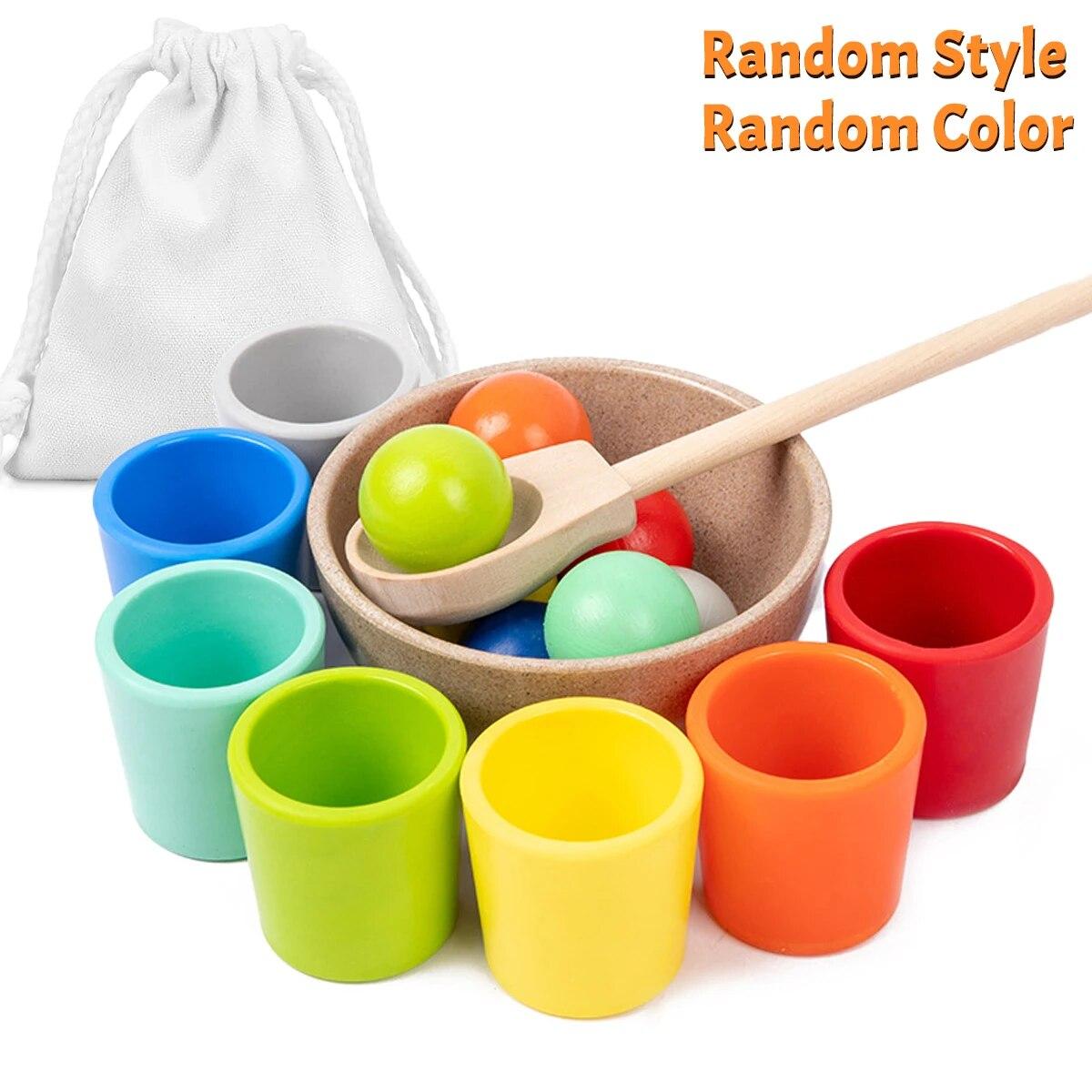 Детские деревянные игрушки Монтессори Радужный мяч и стаканчики Игры для сортировки по цвету Мелкая моторика Раннее образование Обучающие игрушки Подарки для детей