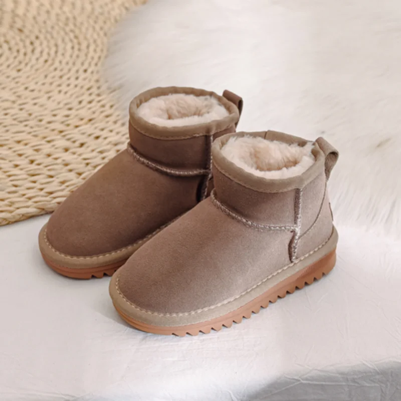 Детские зимние ботинки из воловьей кожи для мальчиков и девочек, короткие ботинки из плотного плюша и хлопка