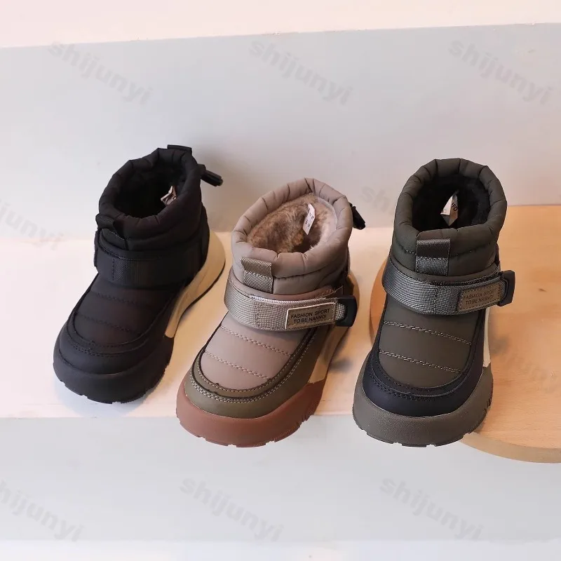 Детские зимние ботинки, коллекция 2024, плюшевая теплая хлопковая обувь для девочек и мальчиков, детская модная удобная зимняя нескользящая уличная обувь с защитой от холода