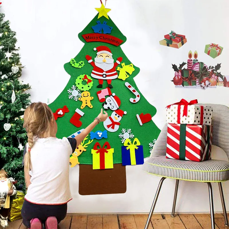Детские игрушки Монтессори, детская войлочная Рождественская елка «сделай сам» со съемными украшениями, Санта-Клаус, Рождественская елка, дверь, настенные украшения
