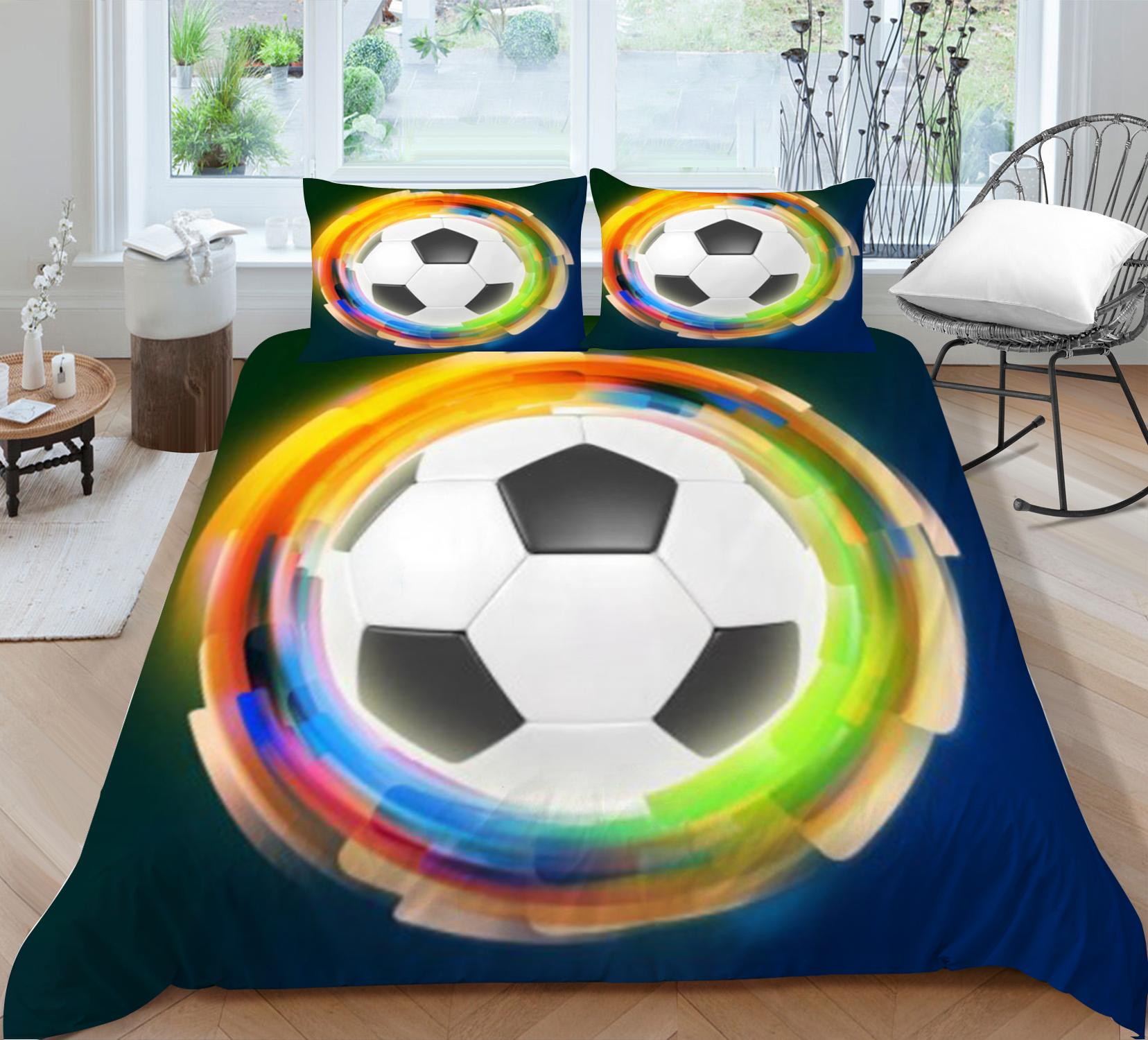 Детские комплекты постельного белья, подарки, комплекты пододеяльников с футбольным принтом для детей, 2/3 шт., домашнее постельное белье, наволочка, дышащая Single 135x200cm