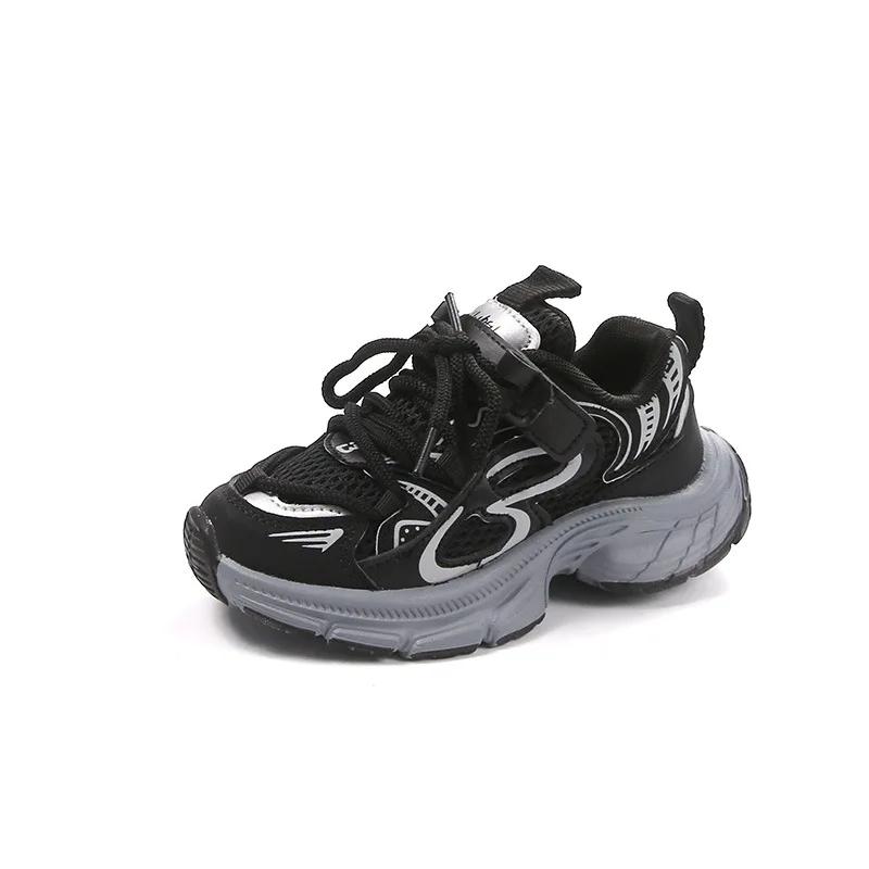 Детские кроссовки для девочек Массивные Детские Школьные Баскетбольные Кроссовки Сетчатые Дышащие Модные Повседневные Спортивные Кроссовки на Липучке 26 чёрный