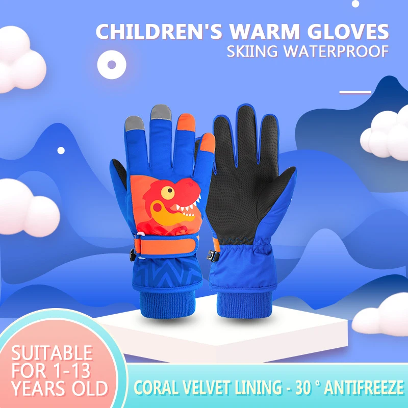 Детские лыжные перчатки для улицы, Детские Зимние бархатные плотные теплые перчатки, водонепроницаемые Симпатичные Мультяшные варежки для...