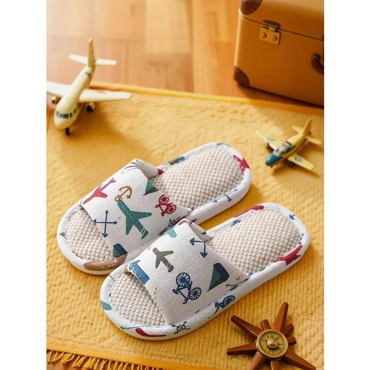 Детские льняные тапочки мультяшные милые для мальчиков и девочек домашние нескользящие впитывающие 34-35