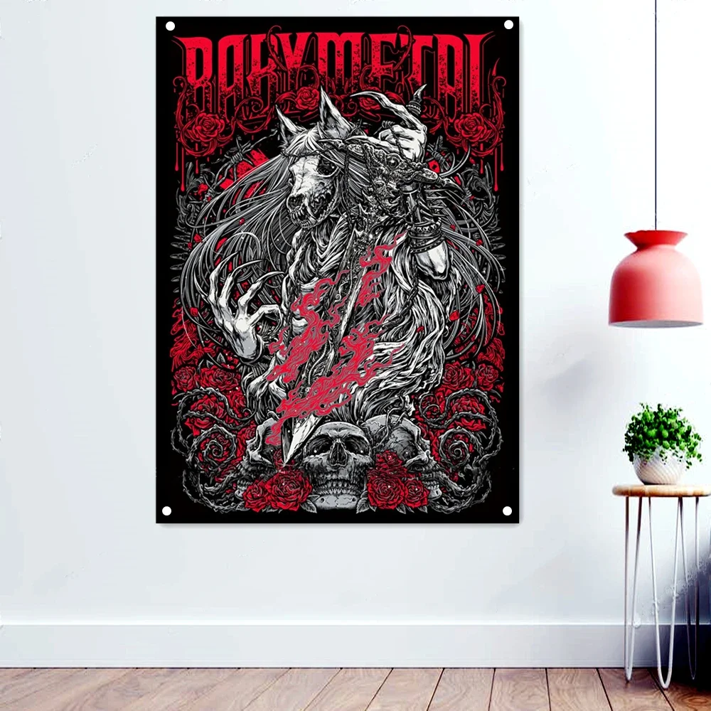 Детские металлические ужасы, обесжающие художественные баннеры, подвесная ткань, домашний декор, металлические музыкальные постеры смерти, настенное искусство, рок-группа, значок, флаги, подарки