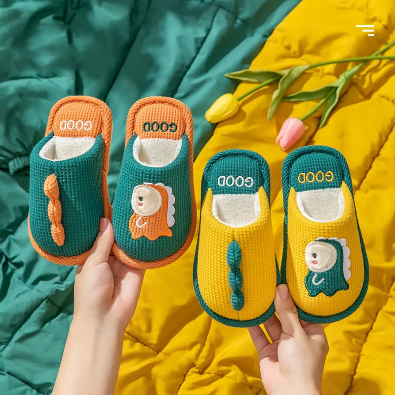 Детские меховые тапочки с рисунком динозавра, мягкие осенне-зимние теплые домашние тапочки принцессы для маленьких мальчиков и девочек, домашняя хлопковая флисовая меховая обувь для спальни