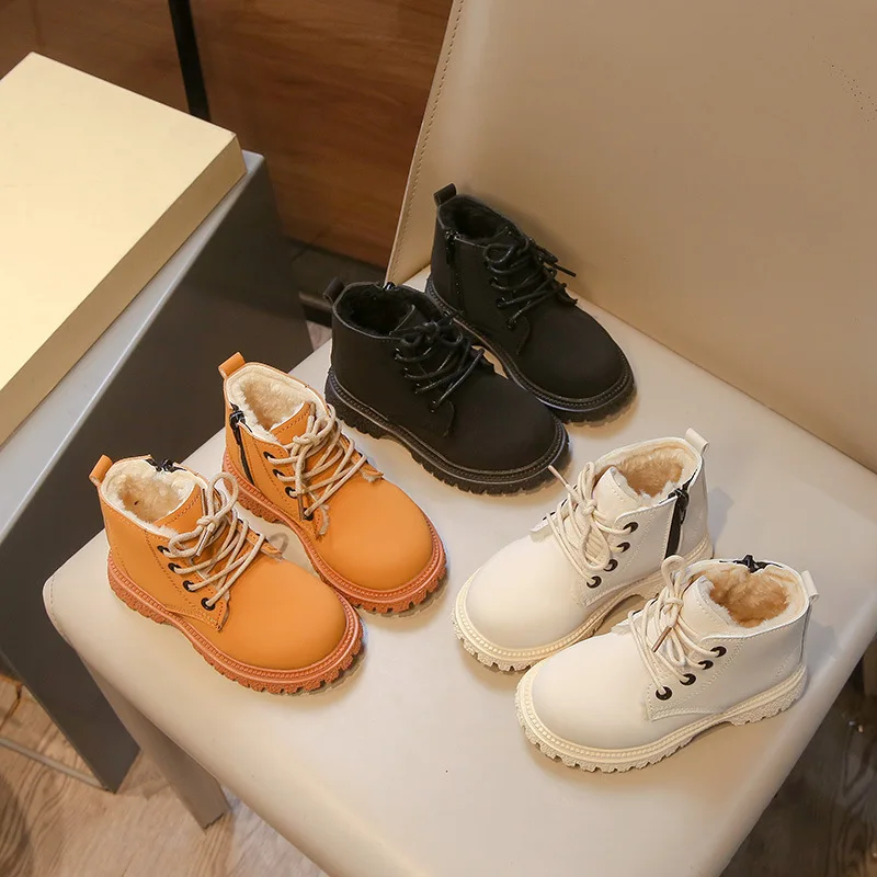 Детские модные ботинки, осенне-зимние новые бархатные детские ботинки для мальчиков и девочек, теплая, желтая, черная, бежевая обувь на плоской подошве, размер 21-30