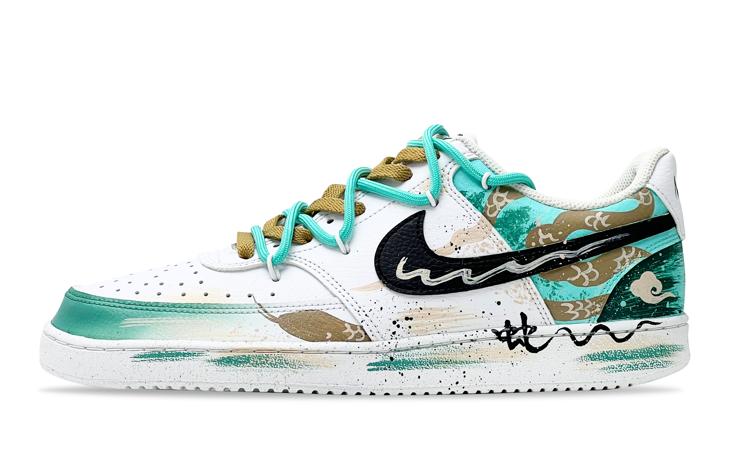 Nike Кроссовки Court Vision 1 с низким верхом, противоскользящие, износостойкие, для скейтбординга, мужские, белые, зеленые