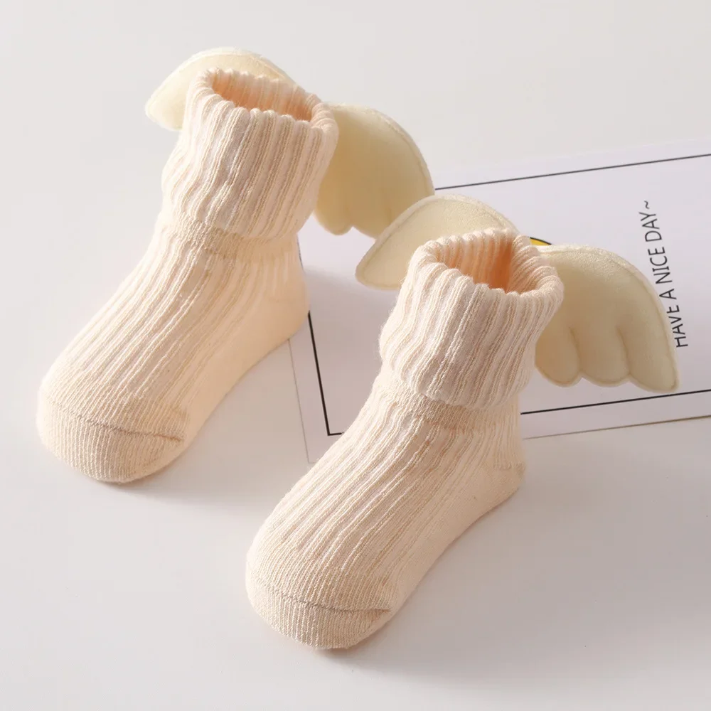 Детские носки, носки с крыльями ангела, чистые хлопковые однотонные носки для новорожденных, детские носки, носки для девочек, детские носки