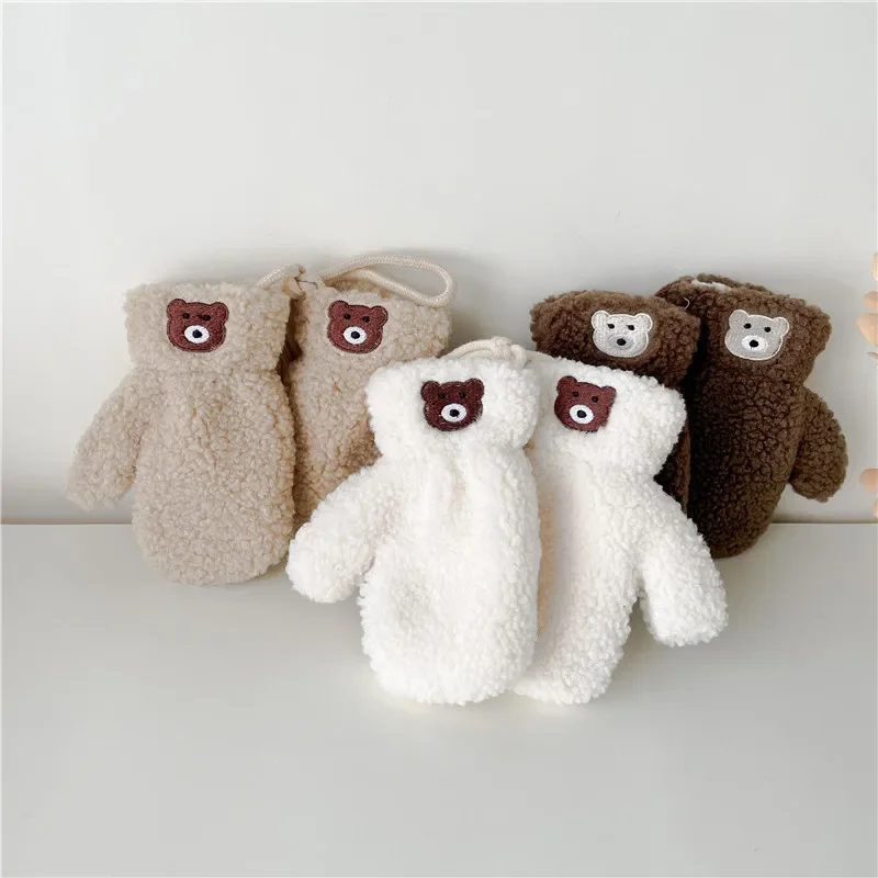 Детские плюшевые перчатки с милым медведем, утепленные детские перчатки из овечьей шерсти, висячие перчатки на шею, детские перчатки с героями мультфильмов, От 2 до 5 лет, зимние теплые перчатки для рук для девочек и мальчиков