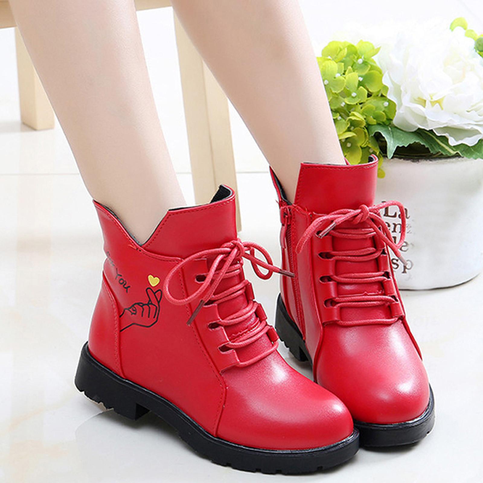 Детские повседневные туфли принцессы с героями мультфильмов для девочек, кожаные сапоги с толстыми ворсинками 31 красный