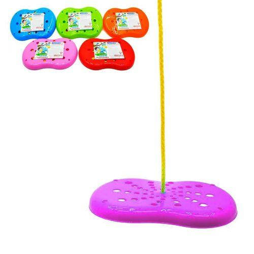 Детские пластиковые качели "Тарзанка". Хорошо тренирует координацию, развивает вестибулярный аппарат. Устанавливать нужно таким образом, чтобы расстояние к ближайшему препятствию не меньше 2 м.; высота от уровня пола к нижнему краю сидения (в состоянии покоя) не менее 30 см. и не более 100 см. Длинна шнура - 2,5 м. Максимальная нагрузка - 30 кг.