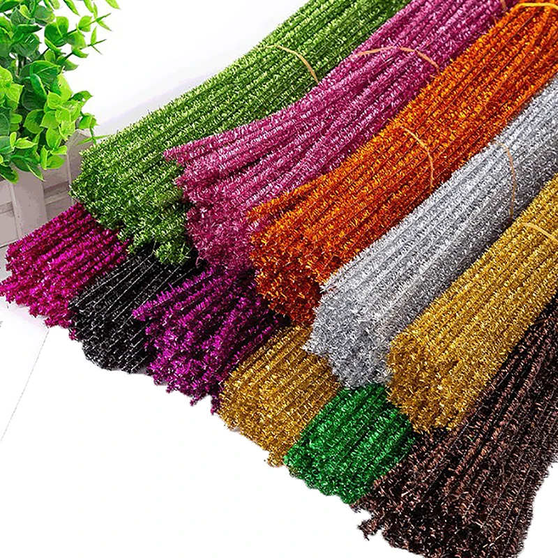 Детские развивающие товары для рукоделия, игрушки для рукоделия, 100 шт., блестящие искусственные плюшевые стебли мишуры, проводные палочки