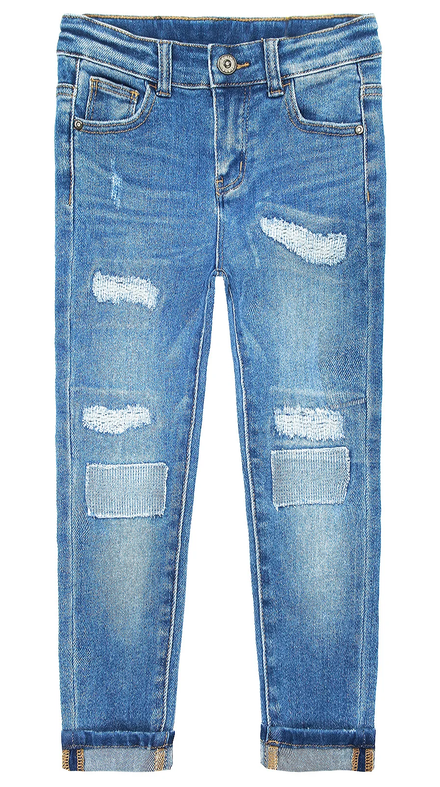 Детские рваные модные эластичные узкие джинсы Kidscool с заплатками внутри