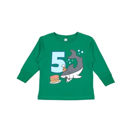 Inktastic 5th Birthday Shark with Cake Gift Toddler Boy or Toddler Girl Long Sleeve T-Shirt