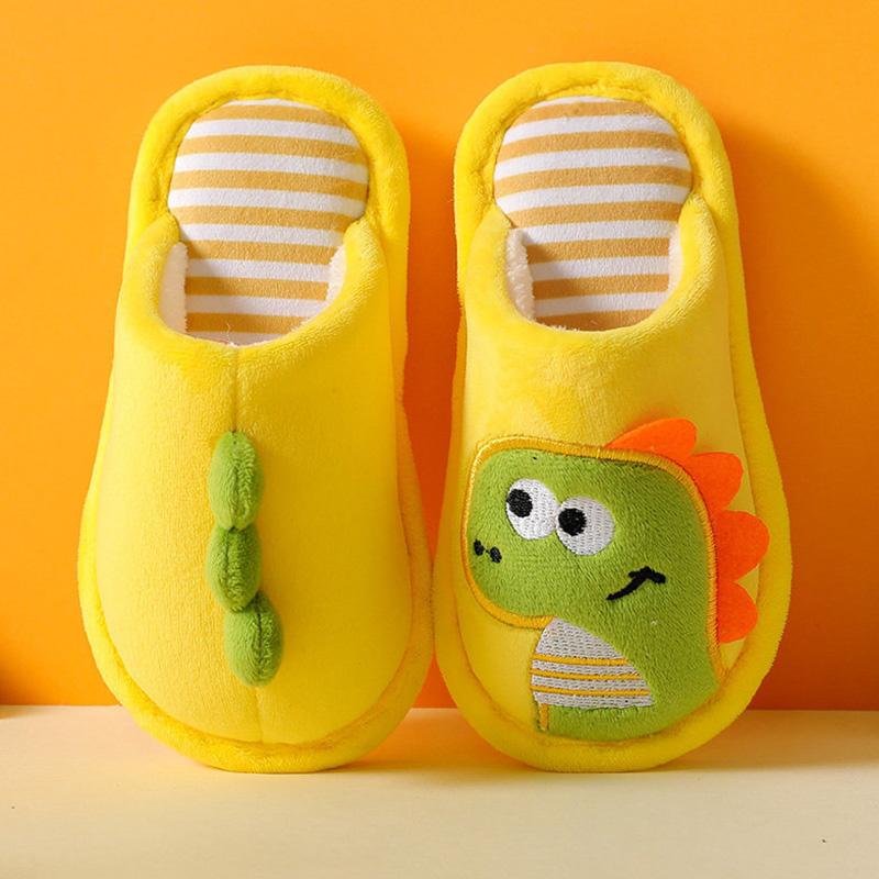 Детские тапочки, плюшевые тапочки с милым мультяшным динозавром, нескользящая детская обувь на мягкой подошве, домашняя обувь 26-27