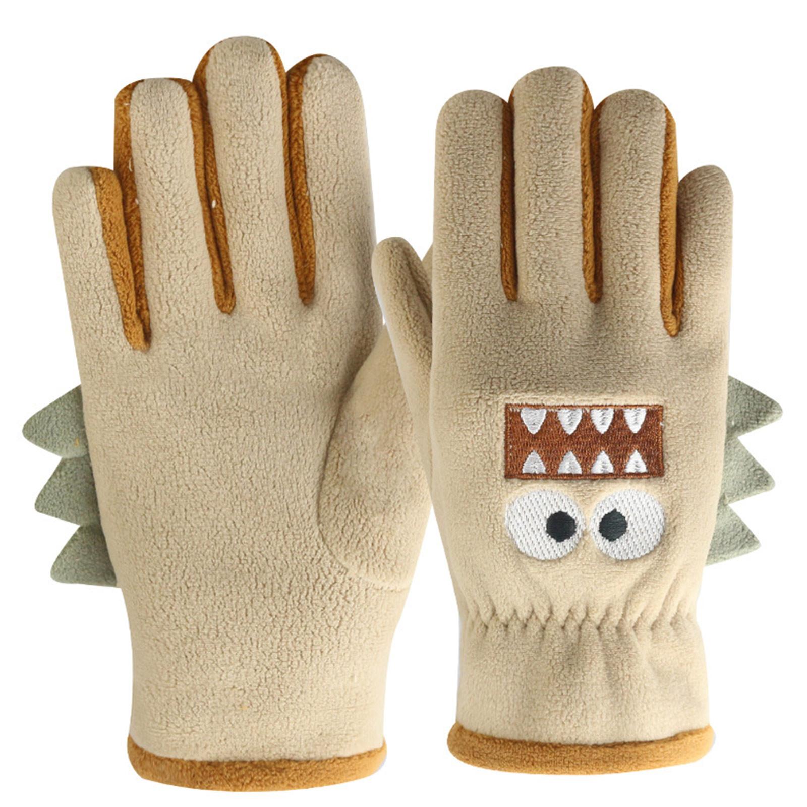 Детские теплые перчатки с зимним бархатом на пять пальцев для холода и ветра, милые мультяшные студенческие перчатки для езды на велосипеде и снега One Size жёлтый