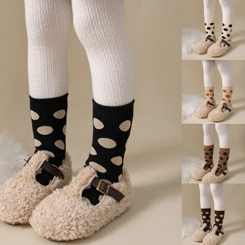 Детские утолщенные носки с петлями, теплые носки в круглый горошек, осень-зима, средней длины