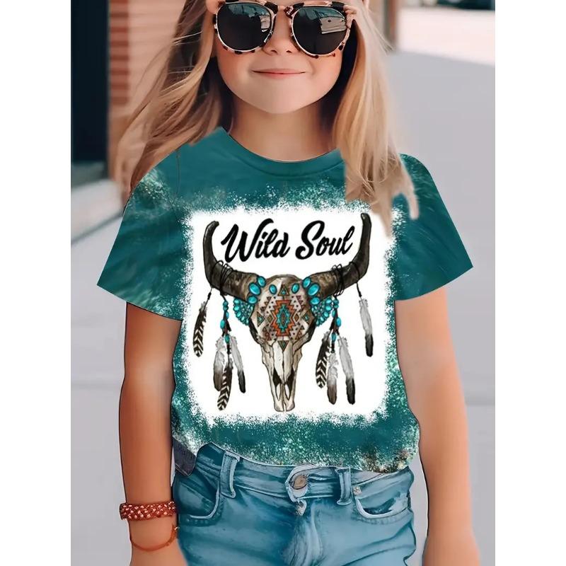 Детские футболки Летняя футболка для девочек с короткими рукавами и принтом животных Модный повседневный свободный топ 170