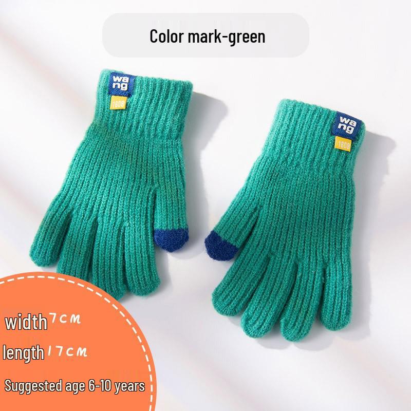 Детские шерстяные вязаные перчатки унисекс - Однотонные, с раздельными пальцами, для велоспорта и тепла на открытом воздухе осенью/зимой Length 19CM Width 9.5CM
