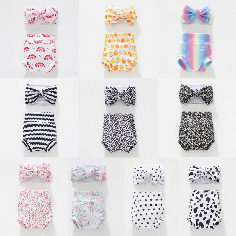 Детские шорты для маленьких девочек, свободные брюки в горошек с цветочным принтом, повязка на голову, шаровары, подгузник