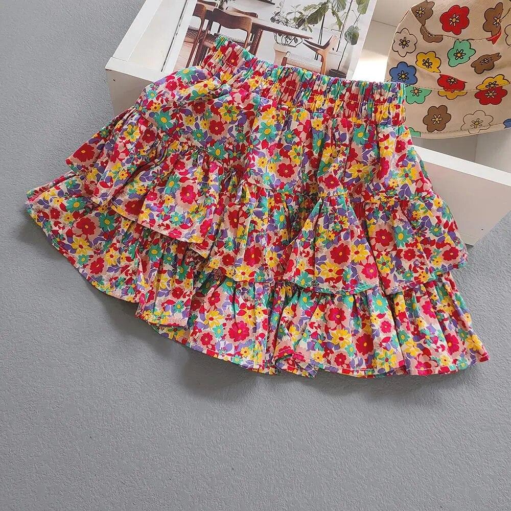 Детские юбки-торты с цветочным принтом для девочек, летнее бальное платье-пачка, юбка, хлопковый костюм для малышей 90 красный