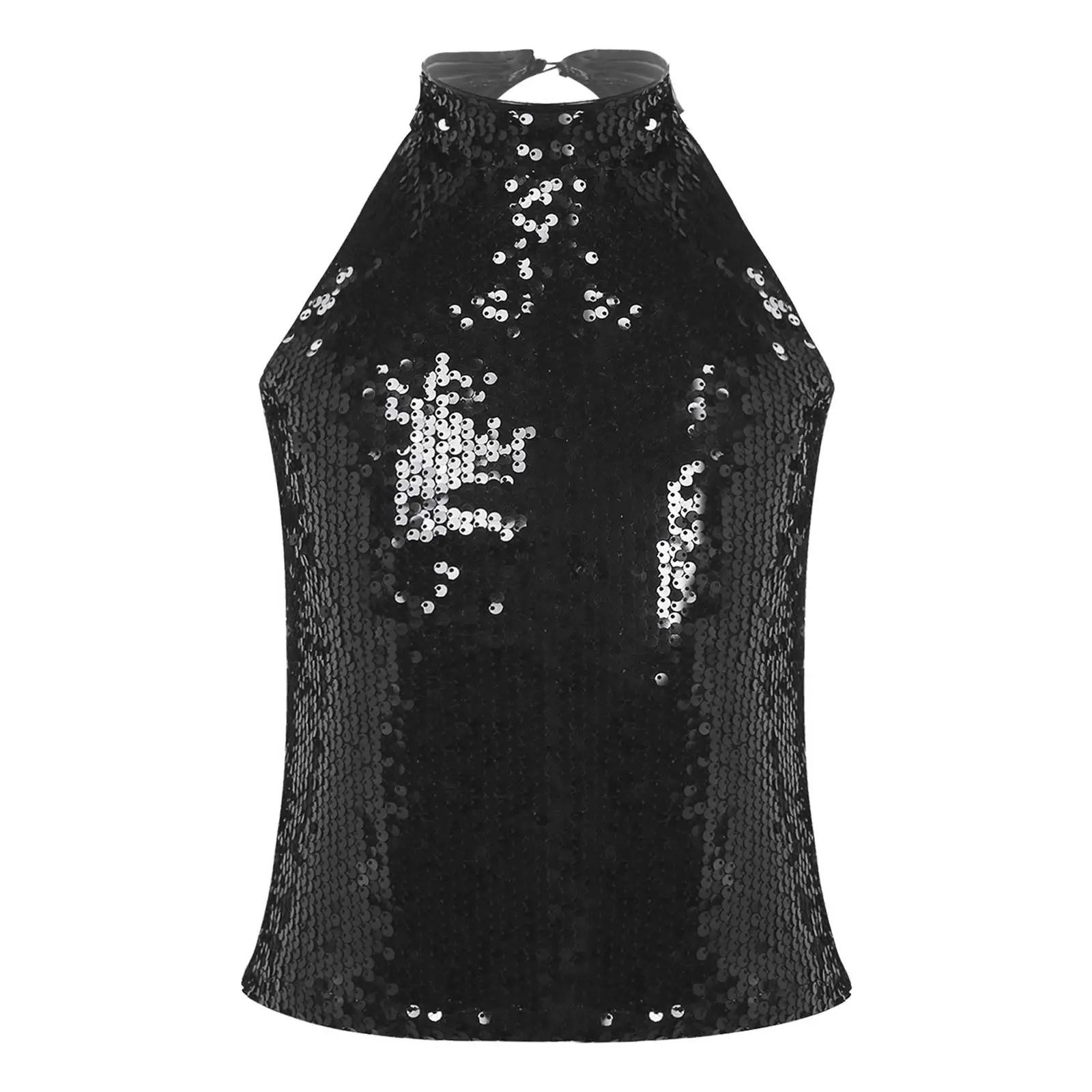 Детский Блестящий жилет для девочек, футболка, модная уличная одежда, блестящая футболка без рукавов, одежда для выступлений, костюм для джа...