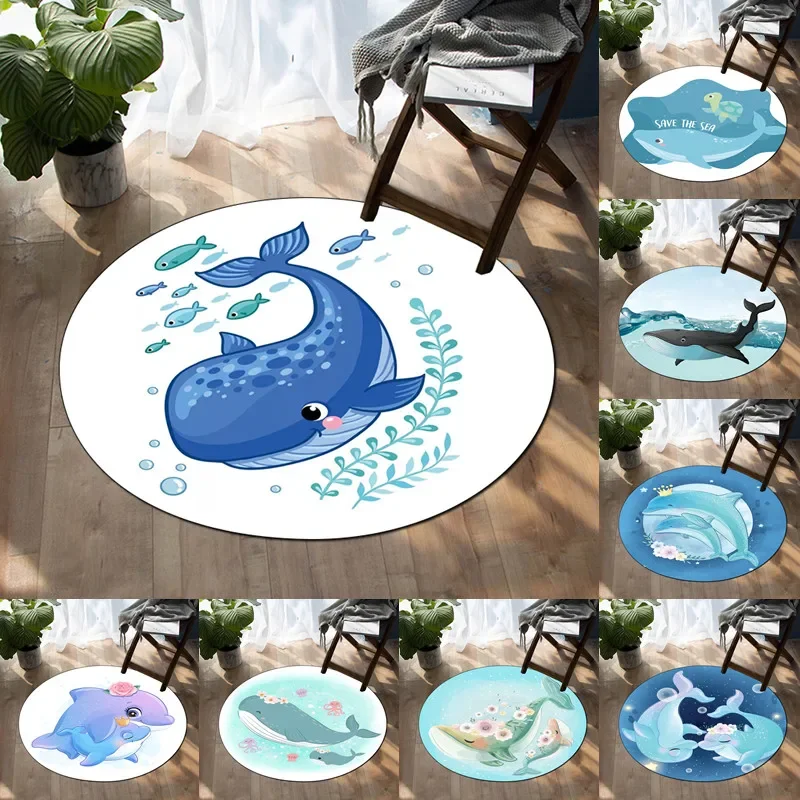 Детский Декоративный Напольный коврик для спальни, гостиной, ванной комнаты, круглый коврик с рисунком дельфина