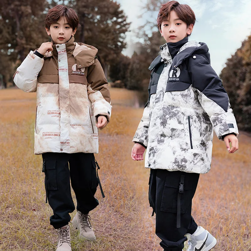 Детский Зимний пуховик Корейская версия модное зимнее горное пальто детская утепленная парка для мальчиков-подростков 4-15 T пальто
