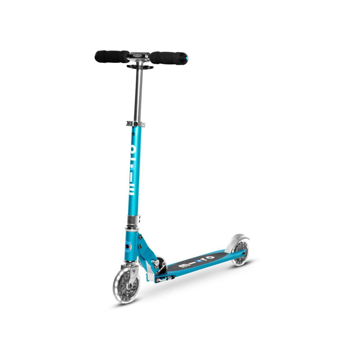 Самокат MICRO серии Sprite LED" – ГОЛУБОЙ ОКЕАН совершенный и прочный двухколесный самокат. Он оснащен светящимися колесами и складной рамой.