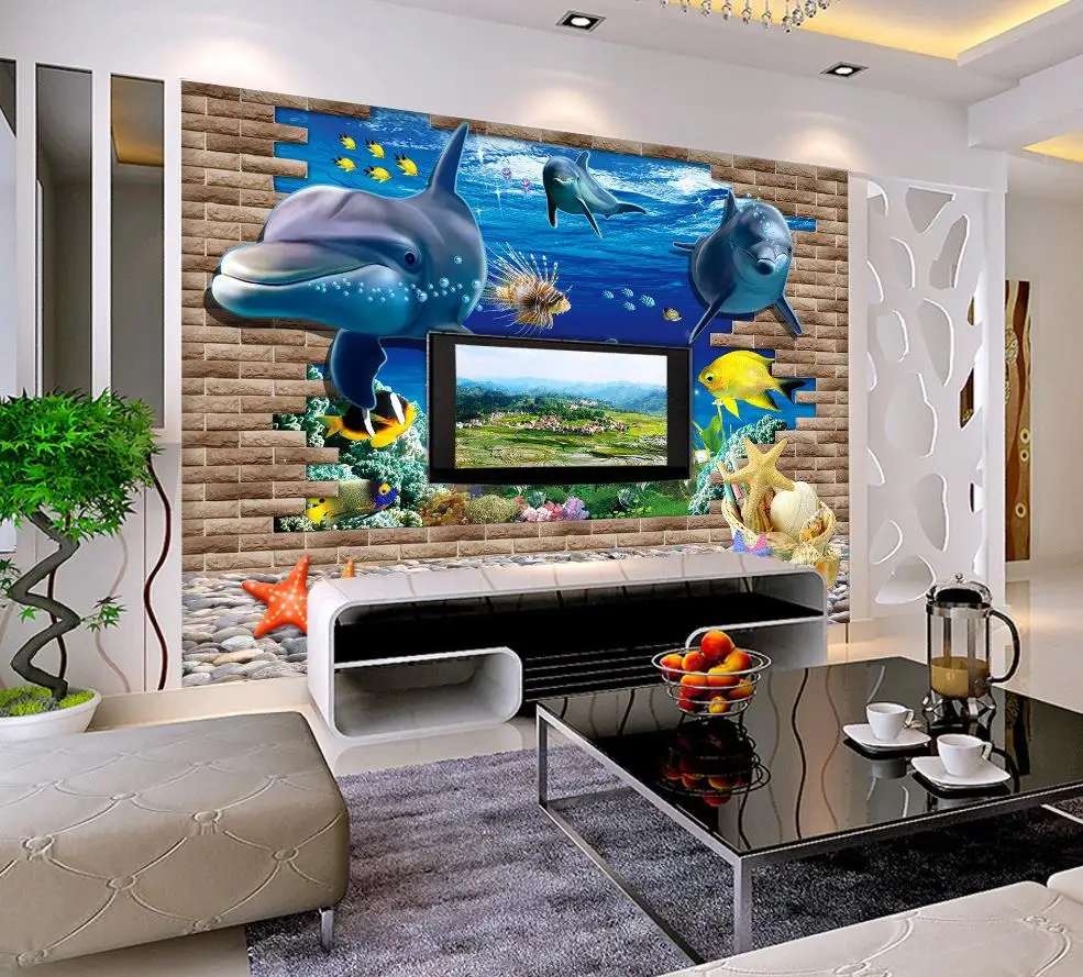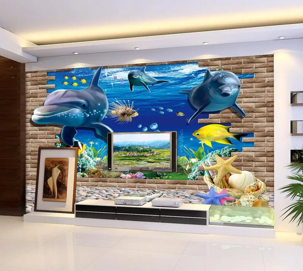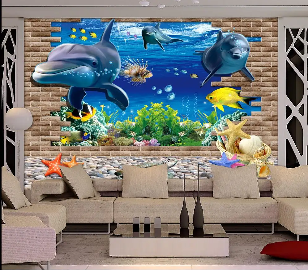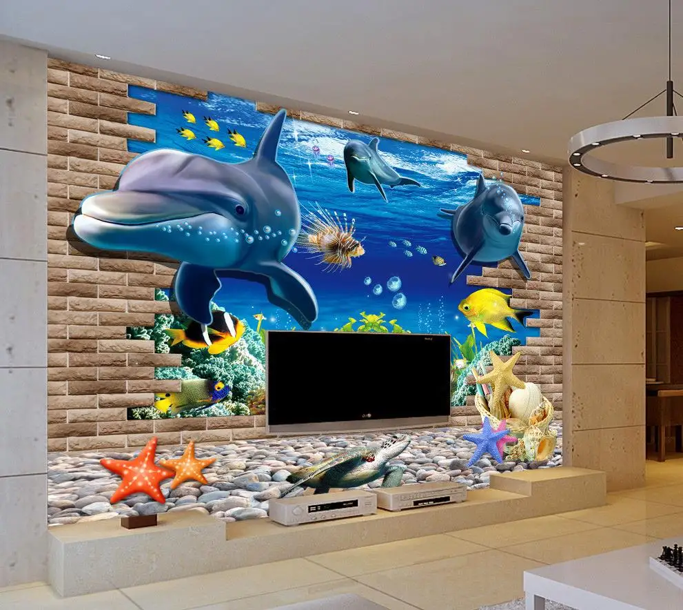 Детский Стиль, дельфин, океан, пейзаж, фрески, 3d Настенные обои, украшение для дома