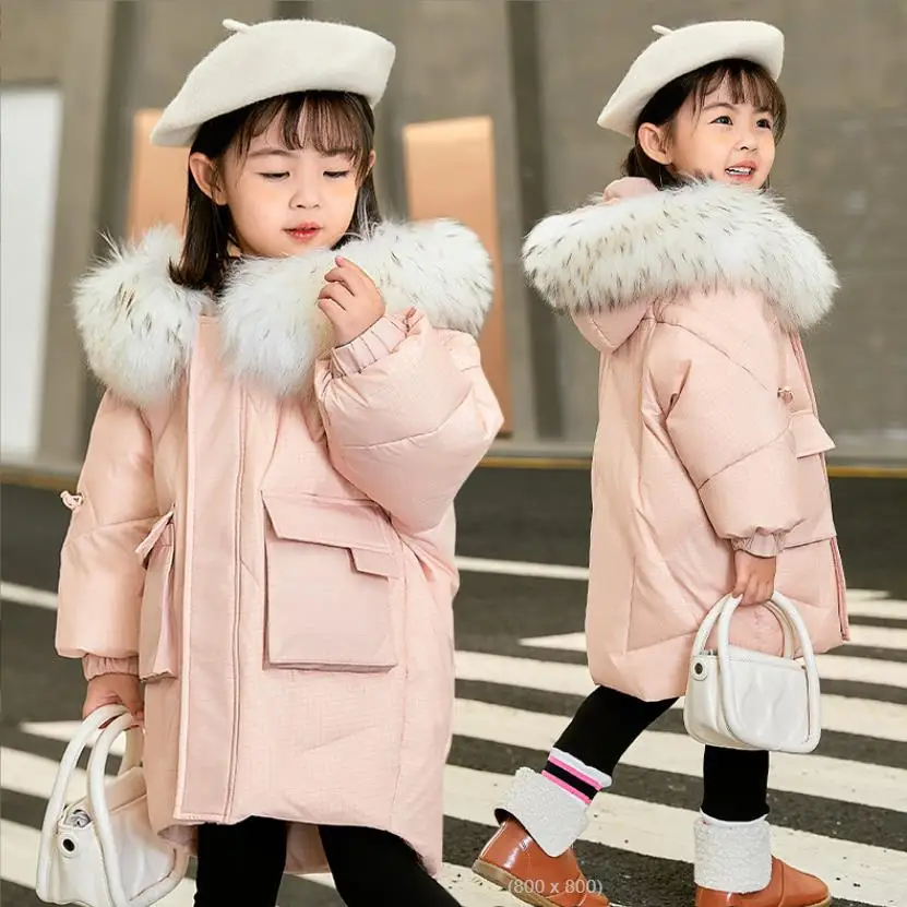 Детский белый пуховик с воротником из натурального меха