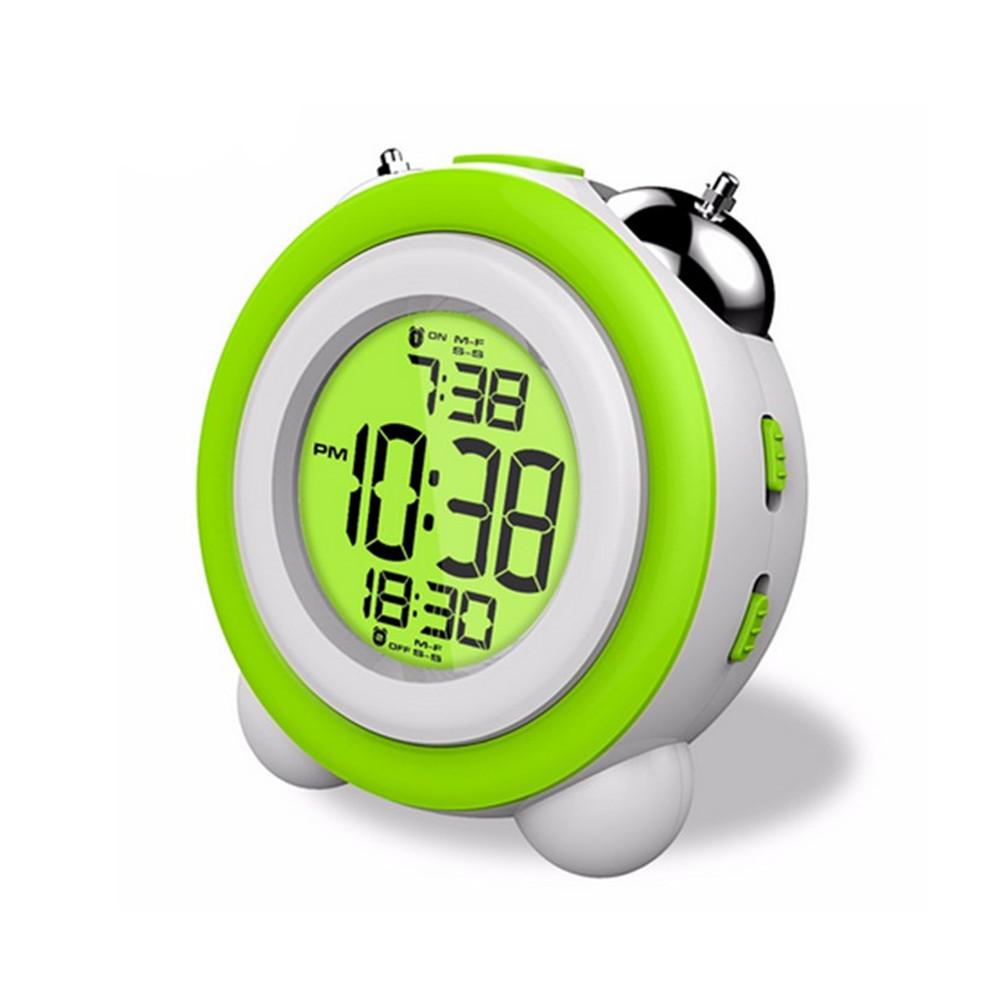 Детский будильник, тихий будильник, двойной колокольчик, будильник, бесшумные часы для пребывания в постели, детский настольный будильник, детское кольцо, электронные часы с колокольчиком 12*12*7.3cm зелёный