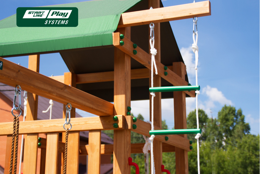 В производстве городка SUNNY стандарт используется дерево высокого качества, которое прошло профессиональную сушку. Каркас изделия изготовлен из клееного бруса сосны, ограждение и иные элементы из массива сосны. Древесина шлифованная и покрыта колерованной пропиткой высокого качества.