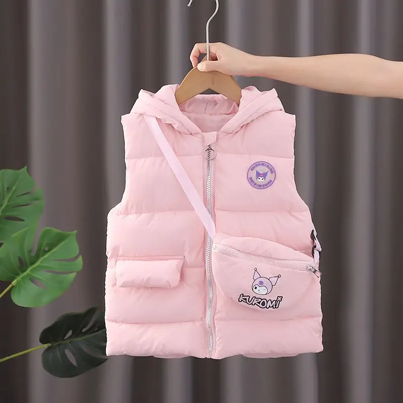 Детский жилет аниме Sanrio, аксессуары kuromi, милая уличная одежда, пуховик из хлопка, зимний жилет, игрушки для девочек, подарок