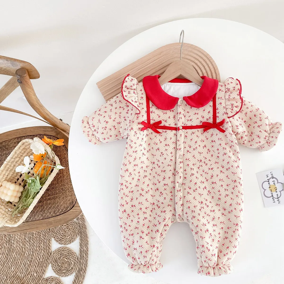 Детский зимний комбинезон для ползания с бантом и цветочным принтом