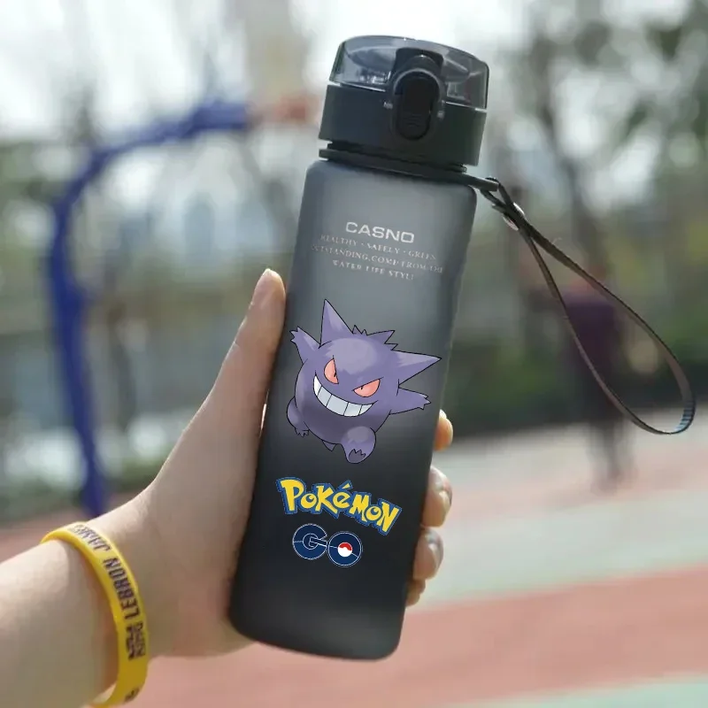 Pokemon Gengar 560ML Black Water Cup Portable Plastic Cartoon Kawai Pikachu Adult Outdoor Large Capacity Sports Water Bottle