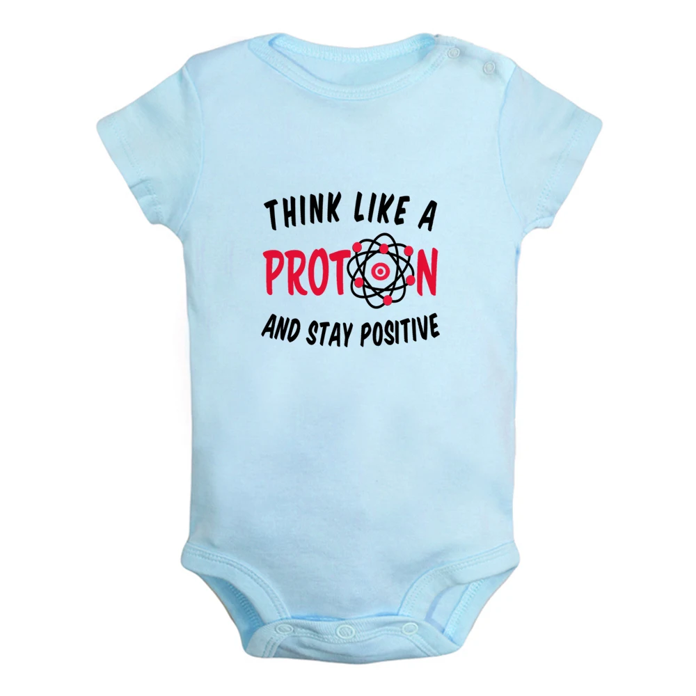 Детский комбидресс с коротким рукавом, милое боди для мальчиков и девочек, подумайте как Протон и оставайтесь положительным, забавное, Одежда для новорожденных