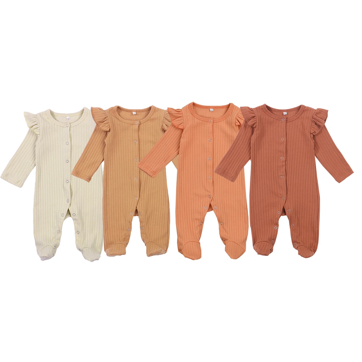 Детский комбинезон унисекс с длинными рукавами, однотонная трикотажная цельная Пижама, осенне-весенний комбинезон для детей от 0 до 6 месяце...