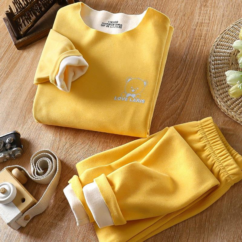 Детский комплект нижнего белья Теплый детский комплект нижнего белья для девочек De Rong Beastless для мальчиков Детская осенняя одежда Осенние брюки Детская одежда 80cm жёлтый