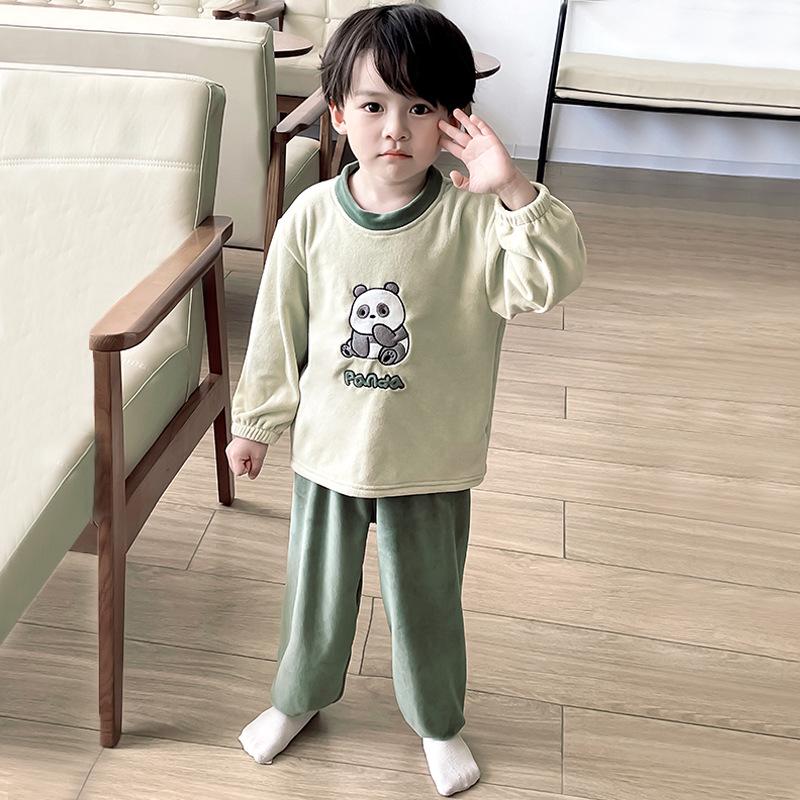 Детский комплект пижамы из шерстяного плюша - Теплая осенне-зимняя одежда для сна из кораллового флиса для мальчиков и девочек 110 cm